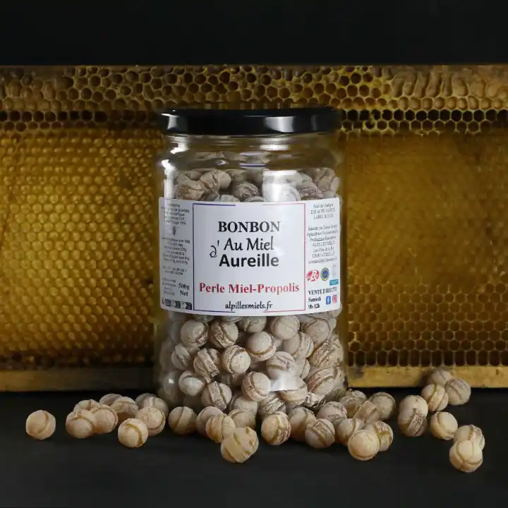 • Petites perles dures, au miel de Provence IGP PROVENCE et Propolis, récoltés dans le PNR des Alpilles