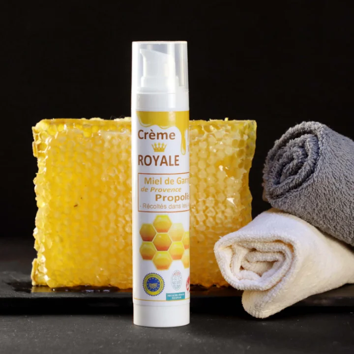 Notre Crème Royale Visage au Miel et à la Propolis est une formule crémeuse conçue pour nourrir en profondeur et hydrater votre peau.